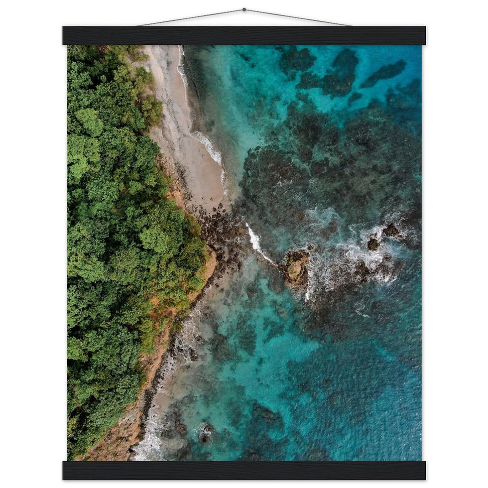 Vintage-inspired pinewood hangers in black, white, natural wood, or dark brown. Elegant framing of heavyweight white matte posters. Magnetic hangers allow easy print switching without damage. FSC Certified sustainably-sourced materials.